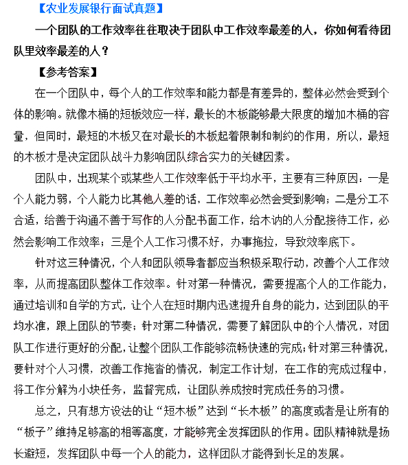 2017年中國農(nóng)業(yè)發(fā)展銀行校園招聘面試真題
