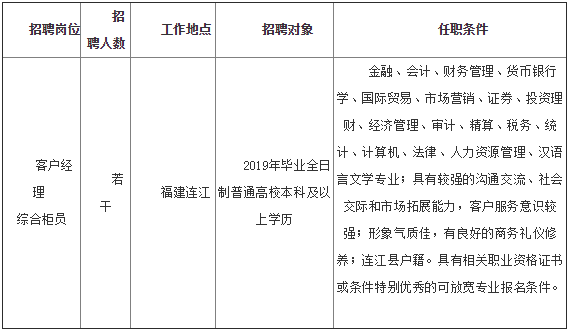 2019福建連江恒欣村鎮(zhèn)銀行秋季社會(huì)招聘公告