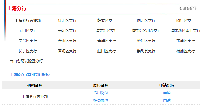 2016年中國郵政儲蓄銀行校園招聘上海分行招聘職位