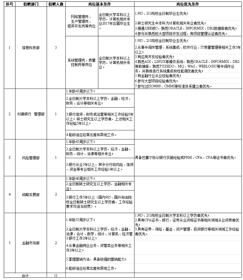 為適應(yīng)業(yè)務(wù)發(fā)展需要,現(xiàn)面向社會(huì)公開(kāi)招聘總行工作人員,誠(chéng)邀有志之士攜手共創(chuàng)美好未來(lái)!