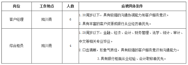 2019年廣西陸川柳銀村鎮(zhèn)銀行招聘啟事