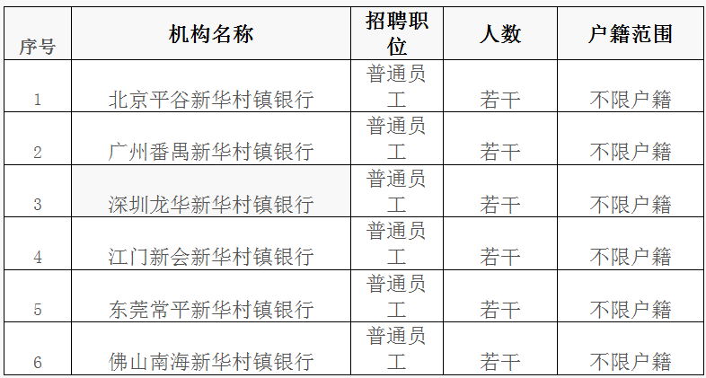 2019年上半年北京平谷等六家新華村鎮銀行普通員工招聘公告