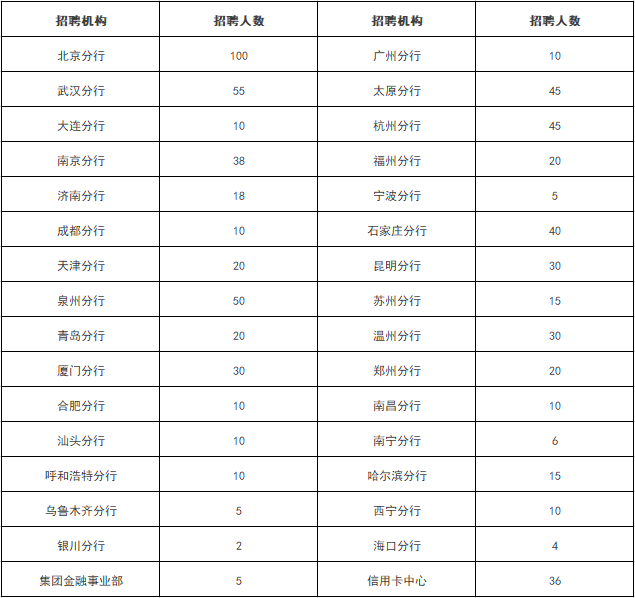 參加本次招聘的機構有中國民生銀行轄內的32家經營機構(按工作地點搜索職位詳情)。