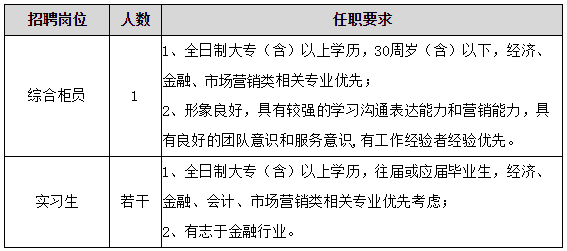 臺州溫嶺小微企業專營支行成立于2014年11月10日。支行自開業以來,一直立足于溫嶺區域經濟,始終堅持“為民而生、與民共生”的企業使命,認真踐行“做綜合服務的銀行、做科技金融的銀行、做綜合服務的銀行”的戰略定位,以“突出特色、開拓創新、持續發展”為經營理念,努力打造“正直、感恩、團結、進取”的員工隊伍,不斷創造客戶價值,成就員工未來。根據業務發展需要,現面向溫嶺地區公開招聘,具體要求如下: