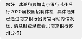 [江蘇]2020南京銀行蘇州分行校園招聘體檢通知