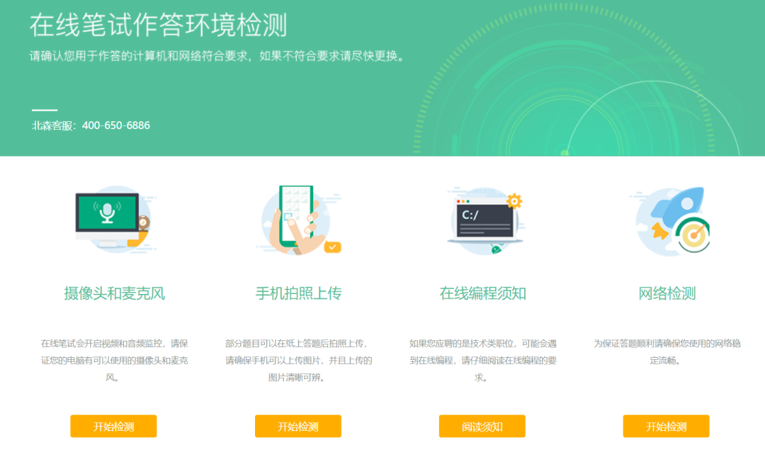 2.模擬筆試是為了讓大家熟悉在線筆試作答流程,同時進行攝像頭、麥克風、網絡等作答環境的檢測和調試。請務必參加模擬筆試,模擬筆試不計分,不影響正式筆試成績。