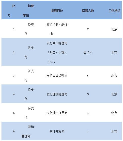 因業務發展及支行籌建需要,現誠邀業界英才加盟,共同開創美好的事業。我們將為您提供良好的職業發展環境和具有較高市場競爭力的薪酬福利待遇,實現員工和本行事業的共同成長!
