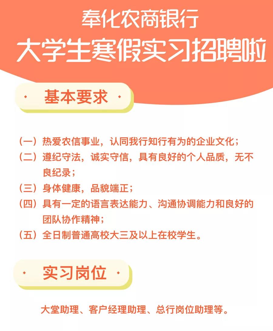 [浙江]2020年奉化農(nóng)商銀行大學(xué)生寒假實(shí)習(xí)招聘公告