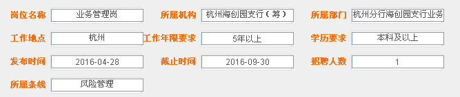 [浙江]2016年寧波銀行杭州分行海創(chuàng)園支行招聘業(yè)務(wù)管理崗啟事