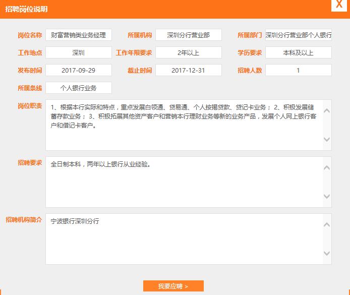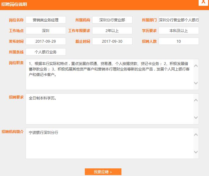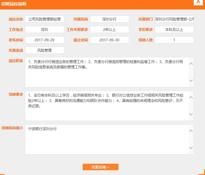 [廣東]2017寧波銀行深圳分行社會(huì)招聘啟事