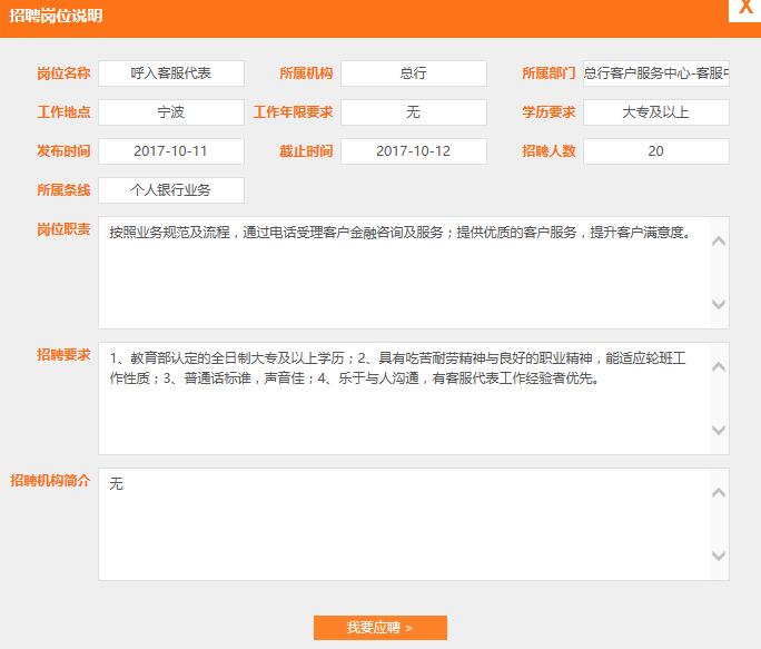 [浙江]2017寧波銀行總行客戶服務(wù)中心招聘啟事