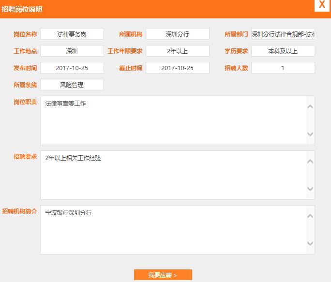 主頁 > 城市商業銀行招聘 > 寧波銀行招聘 > [廣東]2017寧波銀行深圳分行社會招聘
