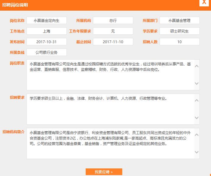[全國]2018寧波銀行上海分行永贏基金培訓生招聘公告
