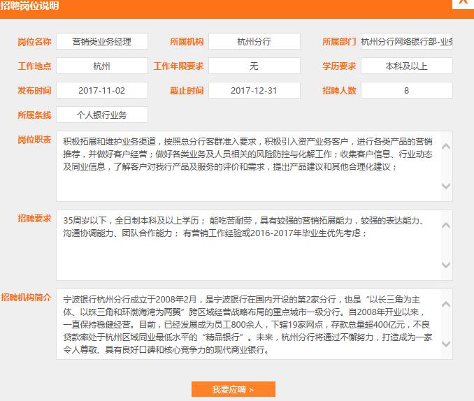 [浙江]2017寧波銀行杭州分行社會招聘公告