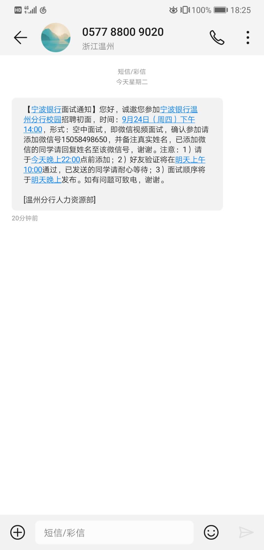 [浙江]2020寧波銀行溫州分行校園招聘初面通知
