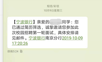 [江蘇]2020寧波銀行南京分行第一輪校園招聘面試通知