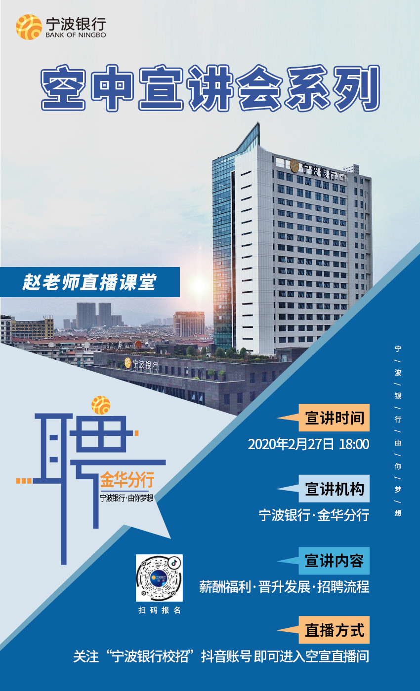 2020年寧波銀行金華分行校園招聘空中宣講會公告