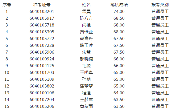 根據《蕭縣農商銀行2016年員工招聘公告》,依據考生筆試成績從高分到低分的順序(考生可登錄安徽農金招聘系統自行查詢筆試成績,本行不再另行電話通知),按照1:1.5比例核定面試入圍人員名單,2016年我行面向社會招聘普通員工面試入圍分數線為"63.5分"。現將相關事項通知如下: