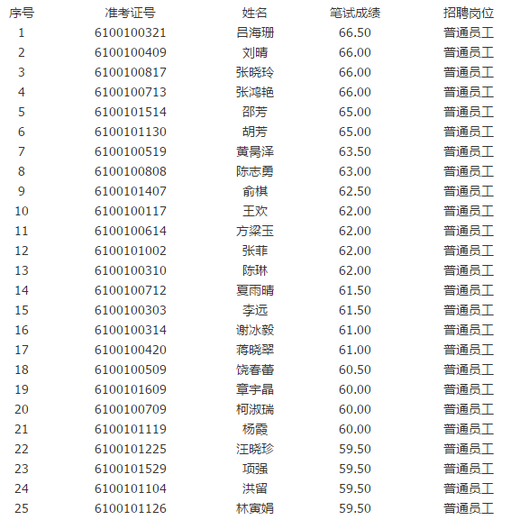 一、面試入圍人員:共25名(最后四名筆試成績并列,一同入圍面試),具體名單見附件。