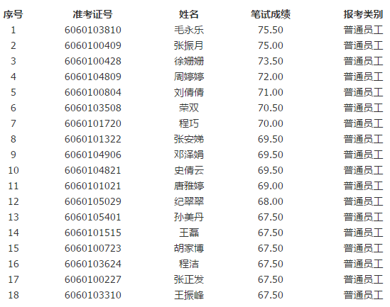 一、面試入圍人員:共18名(最后一名入圍面試人員筆試成績有并列,一同入圍面試),具體名單見附件。