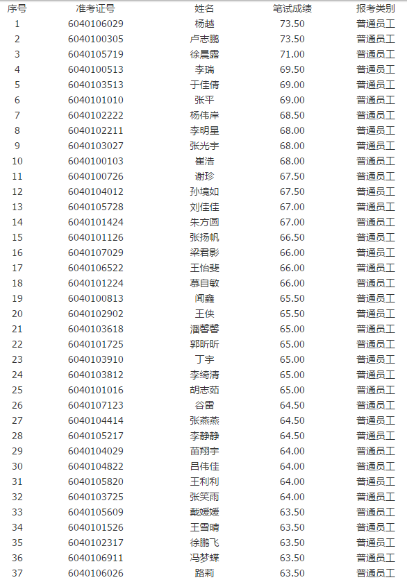 一、面試入圍人員:共 40名(最后一名入圍面試人員筆試成績有并列,一同入圍面試),具體名單見附件。