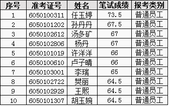 一、面試入圍人員:共10名(最后一名入圍面試人員筆試成績(jī)有并列,一同入圍面試),具體名單見附件。
