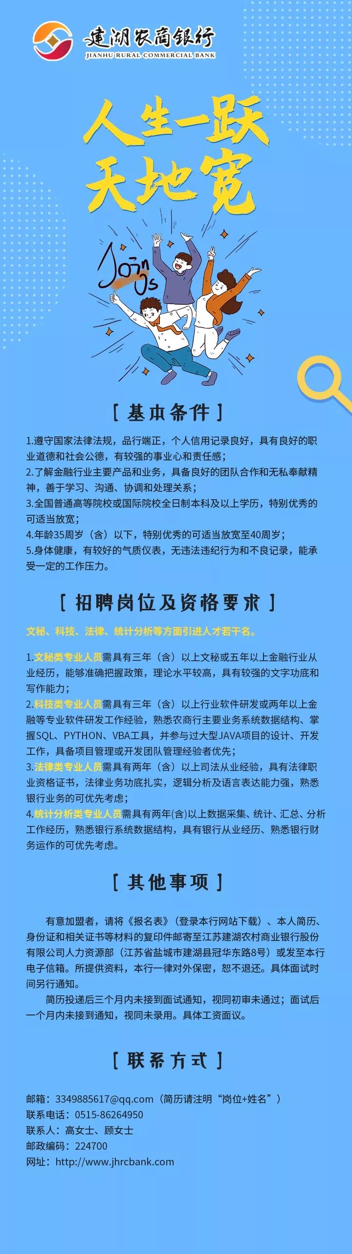 [江蘇]2019年江蘇建湖農商銀行社會招聘公告