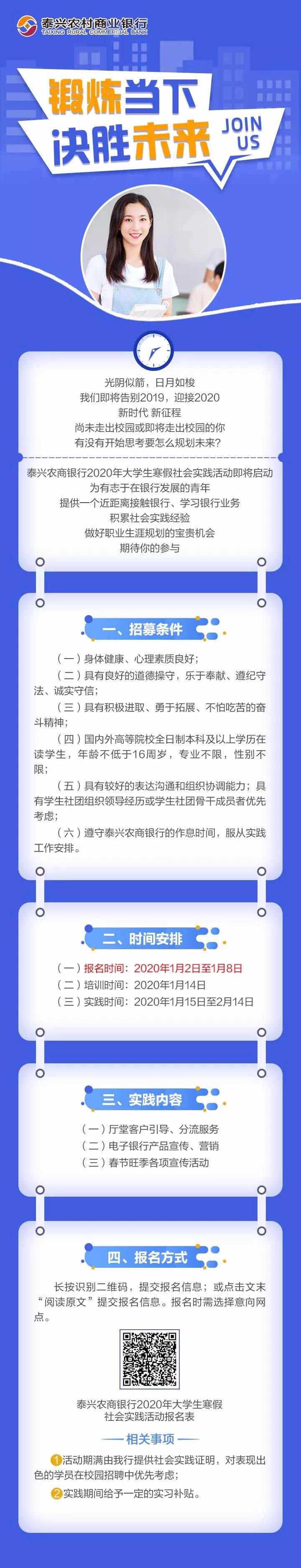 [浙江]2020年泰興農商銀行大學生寒假社會實踐活動即將啟動
