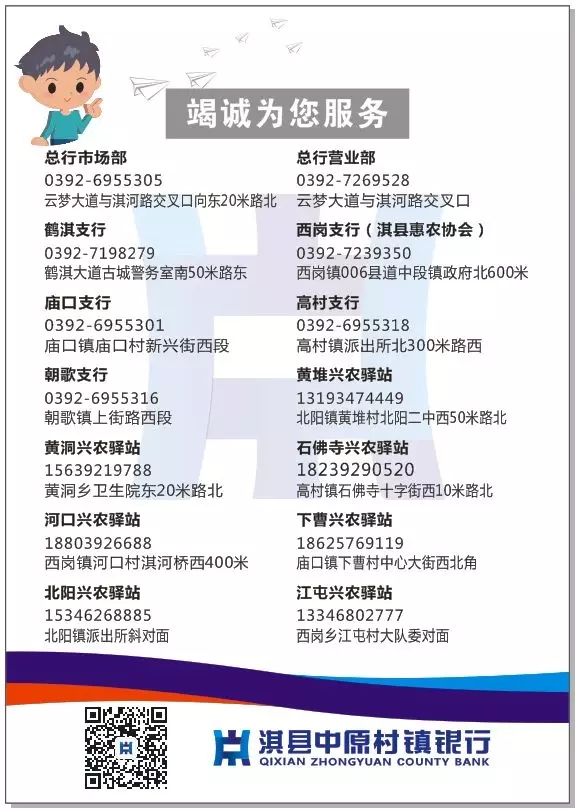 淇縣中原村鎮銀行成立于2010年12月29日,是由中原銀行作為主發起行、經中國銀保監會依法批準成立的銀行業農村金融機構。總行機關設有五個部室、六個中心,下設六家支行和七個興農驛站。