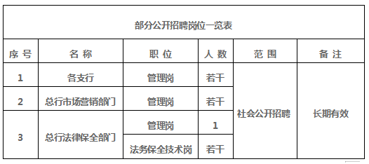 3.具備全日制大專及以上學歷;應聘管理崗位人員應從事銀行工作3年以上,應聘專業技術人員應從事銀行工作1年以上;有銀行法務工作經驗或具有律師資格證者優先考慮;