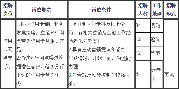 上海浦東發(fā)展銀行股份有限公司貴陽分因業(yè)務(wù)發(fā)展需要,現(xiàn)公開招聘以下崗位。