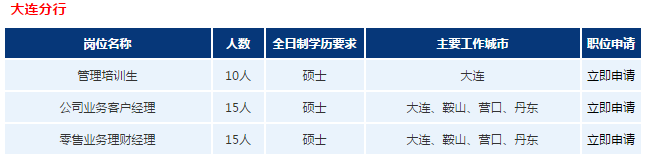 2、總行“管理培訓生”由總行直接招錄,培養方向為中高級管理人才。