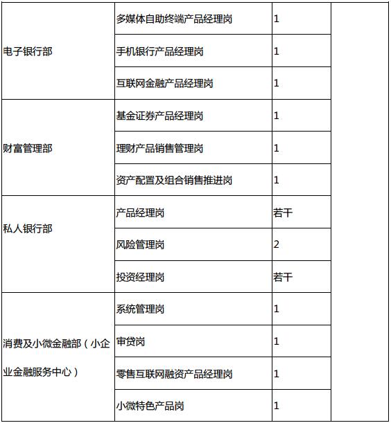應聘條件:35 周歲以下;計算機或經濟類相關專業全日制本科及以上學歷;3 年以上銀行業工作經驗;具有較強的業務分析、溝通及文字表達能力;具有良好的業務創新能力以及較強的溝通和組織協調能力;具有自助銀行、多媒體自助終端管理經驗者優先。