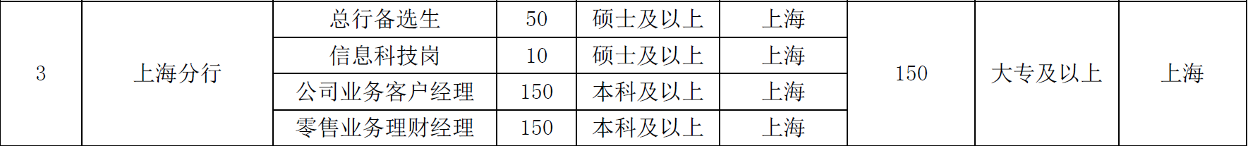 2、“總行備選生”由總行委托上海分行、北京分行、南京分行進行招錄培養,作為總行人才儲備,培養期滿考核合格分配至總行相關部門工作;備選生培養滿一年,將按一定比例選拔優秀者作為“總行管理培訓生”進行重點培養,培養目標為總行中高級管理人才。