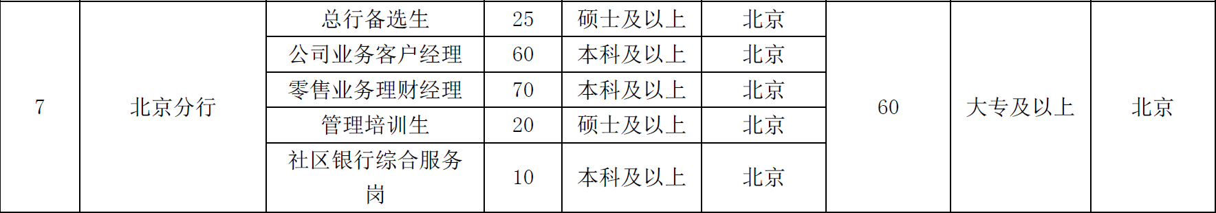 2、“總行備選生”由總行委托上海分行、北京分行、南京分行進行招錄培養,作為總行人才儲備,培養期滿考核合格分配至總行相關部門工作;備選生培養滿一年,將按一定比例選拔優秀者作為“總行管理培訓生”進行重點培養,培養目標為總行中高級管理人才。