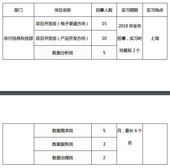 實習人員條件:計算機、管理信息、金融等相關專業本科及以上在校生;具有 SQL 編碼,熟悉數據加工處理和 Office 軟件使用,文字組織和表達能力強。具有較強的工作責任心、良好的邏輯思維能力和團隊合作精神,善于交流和表達以及協調溝通;積極上進,能夠承擔壓力、接受挑戰。。