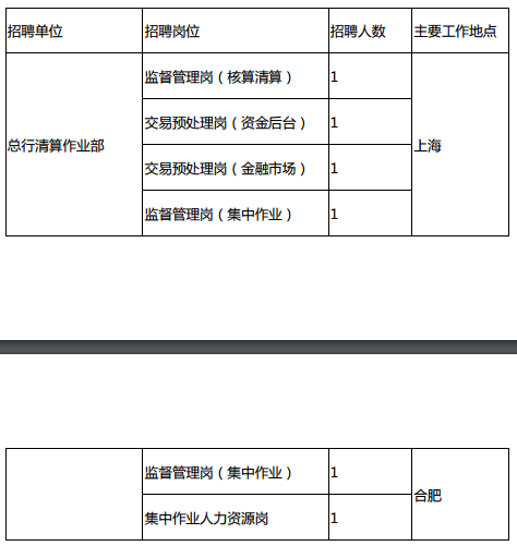 三、招聘崗位列表 (工作地為上海崗位,主要面向上海地區(qū)招聘)