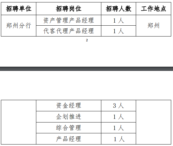 應聘條件:30 周歲及以下;全日制本科及以上學歷;5年及以上金融機構相關崗位工作經驗;有較強的市場策劃和拓展、產品創新和統籌推動能力;對相關金融產品的管理制度、技術特點和市場狀況比較了解,具備較突出業務專長;具有銀行、券商、基金公司等相關產品設計工作經驗者優先。