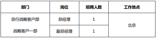 應聘條件:45 周歲以下;具有大學本科及以上學歷;具有 5 年以上全國性股份制商業銀行一級支行/二級分行行長或相當職務經歷,并具備 7 年以上對應行業、客群或客戶經營管理經驗;有強烈的事業心和責任感,有強烈的開拓創新意識和風險合規意識,敢于擔當,清正廉潔,身心健康,無違紀違規記錄。