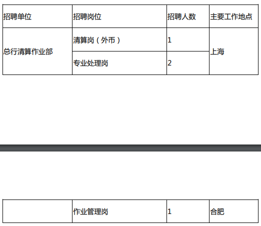 應(yīng)聘條件:35 周歲以下;全日制本科及以上學歷;2 年以上銀行工作經(jīng)驗;熟悉外幣支付結(jié)算、清算,對公對私清算、境內(nèi)外清算等業(yè)務(wù)流程;具有較為全面的業(yè)務(wù)知識和較強的實務(wù)操作能力;具有柜面從業(yè)經(jīng)歷,銀行業(yè)務(wù)操作和管理經(jīng)驗以及清算機構(gòu)工作經(jīng)歷者優(yōu)先。