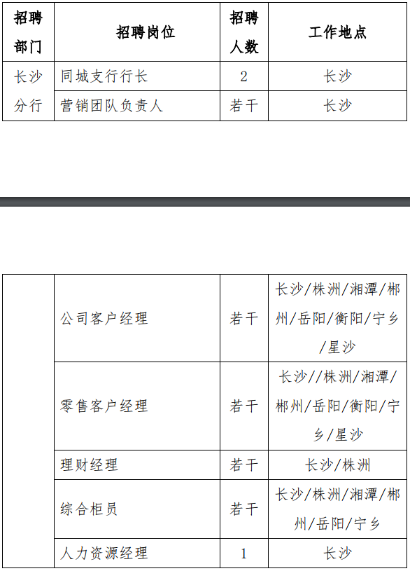 應聘條件:40 周歲以下;全日制本科及以上學歷;3年以上銀行或企業(yè)人力資源從業(yè)經驗;熟悉國家各項人力資源政策法規(guī),具有較強的溝通協(xié)調及文字綜合能力。