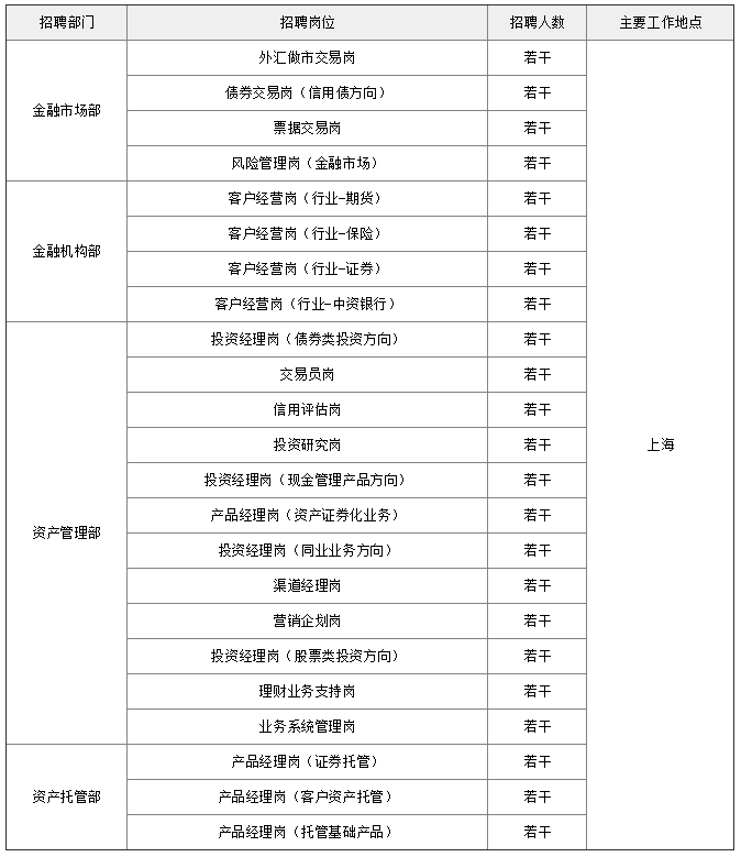 2019浦發銀行總行金融市場板塊相關部門社會招聘公告