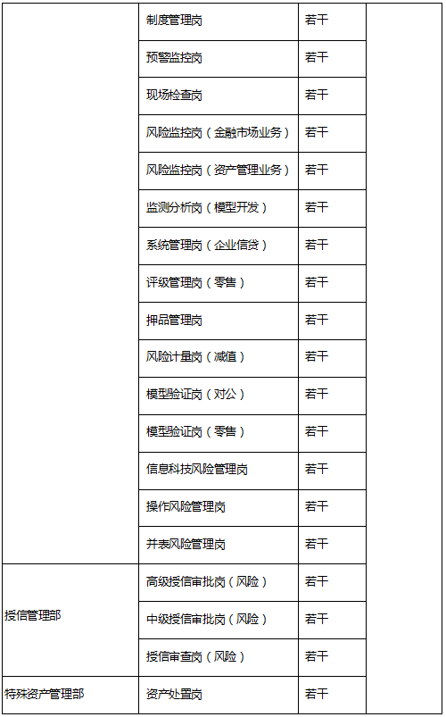 應聘條件:35 周歲以下;金融、經濟、財會、法律等相關專業全日制碩士及以上學歷; 3 年以上國有商業銀行或股份制商業銀行授信審批部門、信貸管理部門或風險政策部門相關工作經歷,或具有國內外著名券商、投行、資產管理公司等金融機構投研領域工作經歷;熟悉信貸政策研究、制定和管理相關工作,熟悉產業區域分布和行業運行特點,了解行業客戶發展趨勢和行業風險控制要點,能夠靈活運用公司授信產品;財務、金融、經濟理論功底扎實,具有一定的行業研究、區域研究能力。有較強的組織協調、溝通能力;工作作風嚴謹, 能夠承擔工作壓力;具備良好的文字表達功底;具有國內外大型商業銀行總行相關風險管理崗位、總分行授信審查審批崗位工作經驗者,或持有 CFA、CPA、ACCA 、FRM 等相關資格者優先。