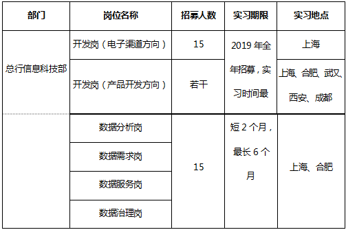 實習人員條件:計算機、管理信息、金融等相關專業本科及以上在校生;具有 SQL 編碼,熟悉數據加工處理和Office 軟件使用,文字組織和表達能力強。具有較強的工作責任心、良好的邏輯思維能力和團隊合作精神,善于交流和表達以及協調溝通;積極上進,能夠承擔壓力、接受挑戰。