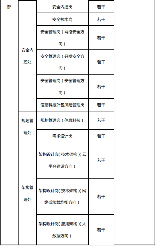 應聘條件:40 周歲以下;計算機、管理類等相關專業全日制本科及以上學歷,信息安全專業和有類似外包管理工作經驗者優先;3 年以上金融、互聯網、咨詢、專業公司內部審計、信息安全管理、信息安全檢查、IT 風險管理、外包管理等相關工作經驗;了解銀行監管機構對信息科技外包的規范要求,熟悉外包管理工作方法和流程,具有獨立開展外包管理和制定信息科技外包管理制度的能力;具備良好的學習能力、溝通和文字表達能力、組織能力,有良好的職業道德素養,樂觀積極;擁有 PMP 等專業資格證書優先。