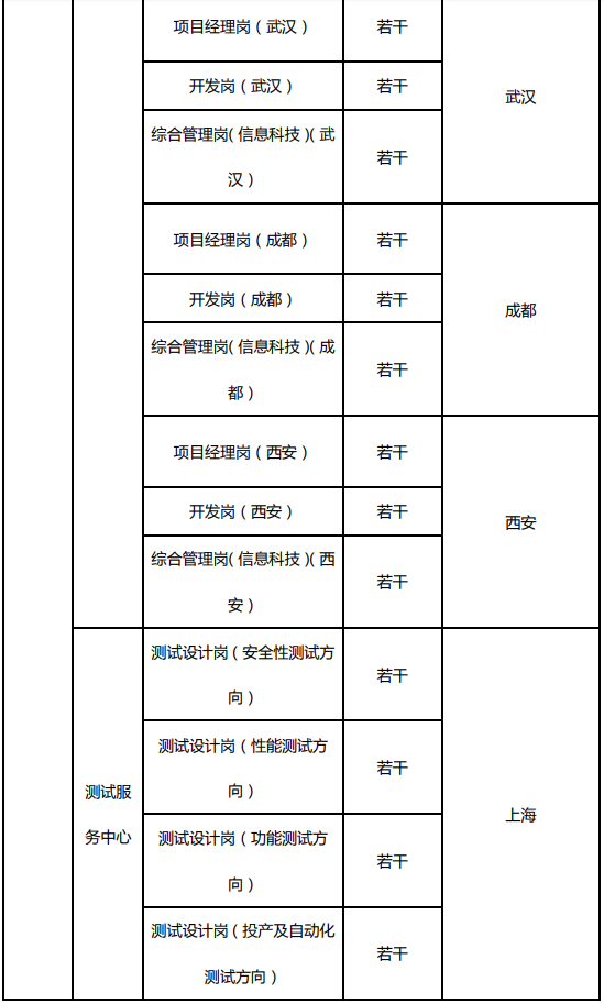 應聘條件:35 周歲以下;計算機等相關專業全日制本科及以上學歷;3 年以上功能測試相關工作經驗;精通軟件測試理論、流程、方法,熟悉軟件缺陷跟蹤工具;具備良好的溝通協調能力和語言文字表達能力;熟悉銀行業務,具備業務分析及測試管理能力,能夠獨立編寫測試方案、測試報告,能夠組織及指導測試分析和測試執行工作的開展;有銀行業 UAT測試工作經驗者優先。