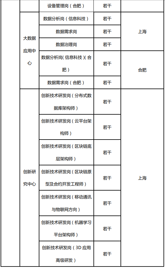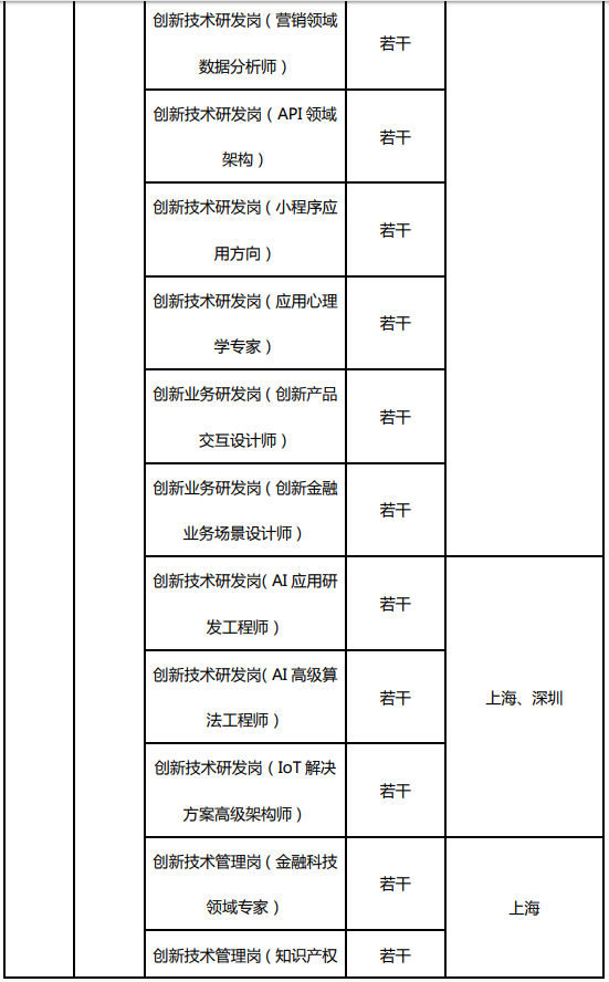 三、招聘崗位列表 (工作地點在上海的崗位,主要面向上海地區招聘)