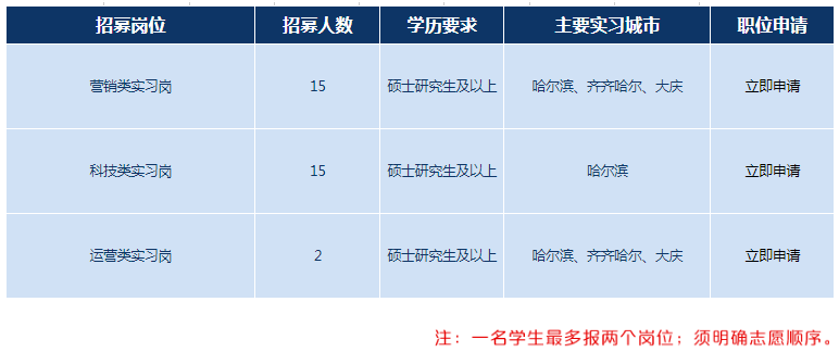 3.專業(yè)不限,其中總行信息科技部招募崗位以計(jì)算機(jī)科技與技術(shù)、信息安全、大數(shù)據(jù)挖掘、統(tǒng)計(jì)學(xué)、數(shù)學(xué)、金融工程等相關(guān)理工科專業(yè)為主。