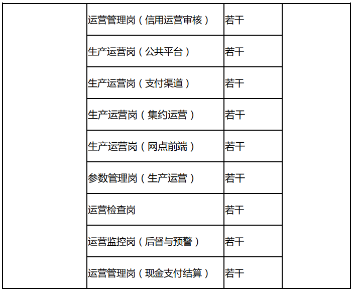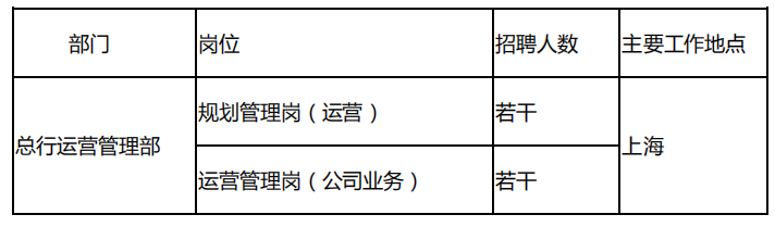 應(yīng)聘條件:35 周歲以下;經(jīng)濟(jì)、金融等相關(guān)專業(yè)全日制本科及以上學(xué)歷,理工類專業(yè)優(yōu)先;3 年以上銀行公司業(yè)務(wù)前、后臺運(yùn)營操作或運(yùn)營管理經(jīng)歷;熟悉相關(guān)業(yè)務(wù)法律法規(guī)和監(jiān)管要求;具備會計知識,熟悉支付結(jié)算法律法規(guī)、銀行會計核算原理和清算流程;具有銀行總分行相關(guān)運(yùn)營管理工作經(jīng)驗者優(yōu)先。