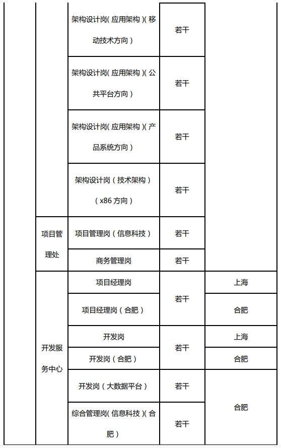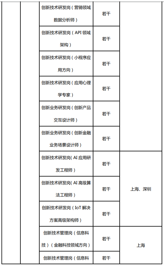 三、招聘崗位列表 (工作地點在上海的崗位,主要面向上海地區招聘)